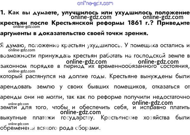 Готовые домашние задания по Истории за 9 класс Учебник Арсентьев, Данилов 2016 - Думаем, сравниваем, размышляем § 18. Социально-экономическое развитие страны в пореформенный период 1