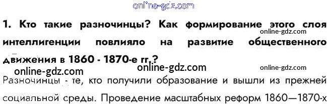 Готовые домашние задания по Истории за 9 класс Учебник Арсентьев, Данилов 2016 - Вопросы и задания § 19-20. Общественное движение при Александре II и политика правительства 1