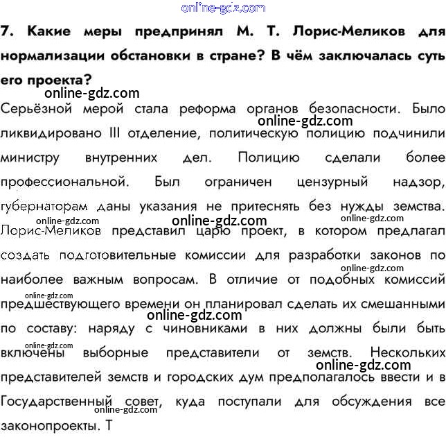 Готовые домашние задания по Истории за 9 класс Учебник Арсентьев, Данилов 2016 - Вопросы и задания § 19-20. Общественное движение при Александре II и политика правительства 7