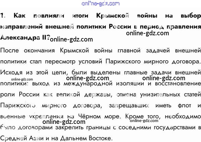 Готовые домашние задания по Истории за 9 класс Учебник Арсентьев, Данилов 2016 - Вопросы и задания § 21. Внешняя политика Александра II. 1