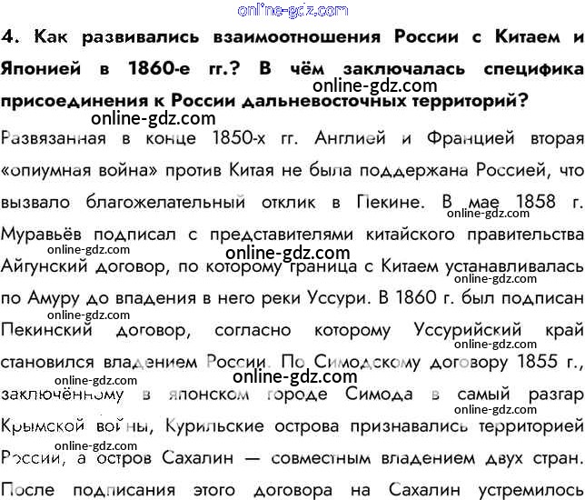 Готовые домашние задания по Истории за 9 класс Учебник Арсентьев, Данилов 2016 - Вопросы и задания § 21. Внешняя политика Александра II. 4