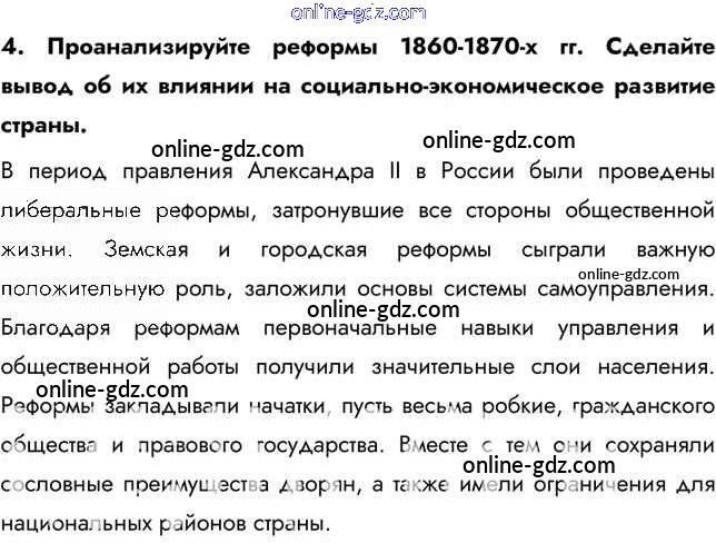 Готовые домашние задания по Истории за 9 класс Учебник Арсентьев, Данилов 2016 - Повторяем и делаем выводы Глава III. Россия в эпоху Великих реформ 4