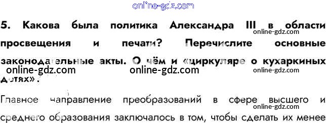 Готовые домашние задания по Истории за 9 класс Учебник Арсентьев, Данилов 2016 - Вопросы и задания § 22. Александр III: особенности внутренней политики 5