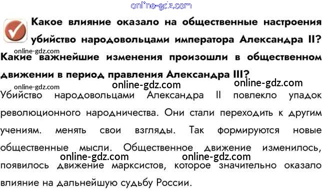 Готовые домашние задания по Истории за 9 класс Учебник Арсентьев, Данилов 2016 - Вопрос в начале параграфа § 24. Общественное движение в 1880-х - первой половине 1890-х гг. 1