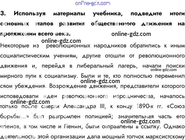 Готовые домашние задания по Истории за 9 класс Учебник Арсентьев, Данилов 2016 - Думаем, сравниваем, размышляем § 24. Общественное движение в 1880-х - первой половине 1890-х гг. 3