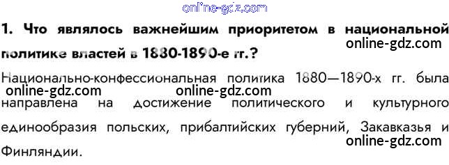 Готовые домашние задания по Истории за 9 класс Учебник Арсентьев, Данилов 2016 - Вопросы и задания Национальная и религиозная политика Александра III 1
