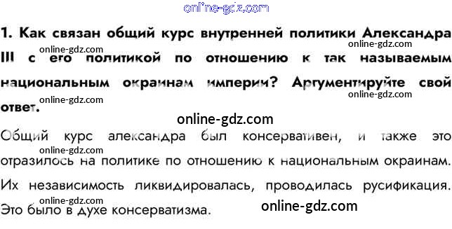 Готовые домашние задания по Истории за 9 класс Учебник Арсентьев, Данилов 2016 - Думаем, сравниваем, размышляем Национальная и религиозная политика Александра III 1