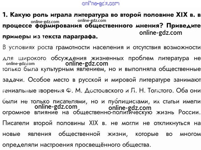 Готовые домашние задания по Истории за 9 класс Учебник Арсентьев, Данилов 2016 - Вопросы и задания Культурное пространство империи во второй половине XIX в.: русская литература 1