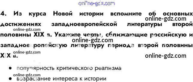 Готовые домашние задания по Истории за 9 класс Учебник Арсентьев, Данилов 2016 - Думаем, сравниваем, размышляем Культурное пространство империи во второй половине XIX в.: русская литература 4