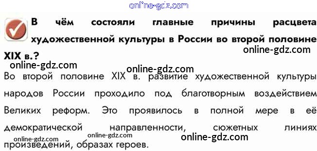 Готовые домашние задания по Истории за 9 класс Учебник Арсентьев, Данилов 2016 - Вопрос в начале параграфа Культурное пространство империи во второй половине XIX в.: художественная культура народов России 1