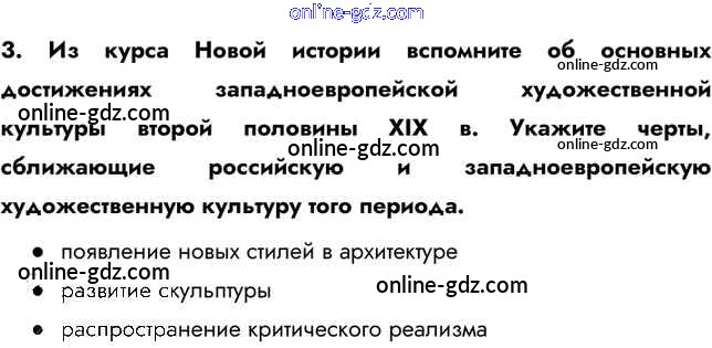 Готовые домашние задания по Истории за 9 класс Учебник Арсентьев, Данилов 2016 - Думаем, сравниваем, размышляем Культурное пространство империи во второй половине XIX в.: художественная культура народов России 3