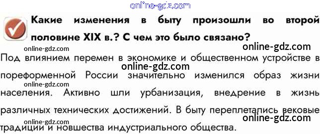 Готовые домашние задания по Истории за 9 класс Учебник Арсентьев, Данилов 2016 - Вопрос в начале параграфа Повседневная жизнь разных слоев населеия в XIX в. 1
