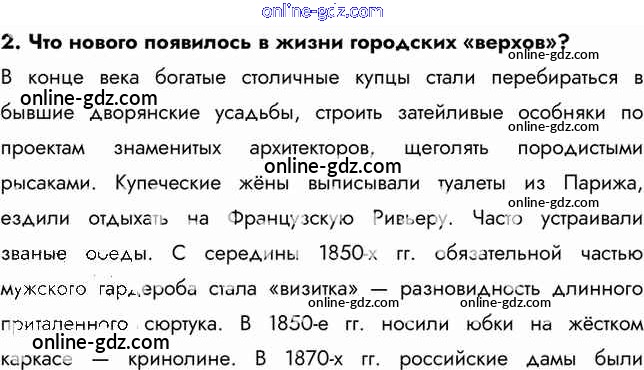 Готовые домашние задания по Истории за 9 класс Учебник Арсентьев, Данилов 2016 - Вопросы и задания Повседневная жизнь разных слоев населеия в XIX в. 2