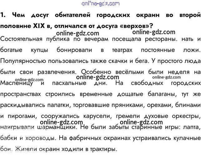 Готовые домашние задания по Истории за 9 класс Учебник Арсентьев, Данилов 2016 - Думаем, сравниваем, размышляем Повседневная жизнь разных слоев населеия в XIX в. 1