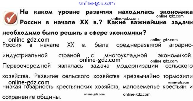 Готовые домашние задания по Истории за 9 класс Учебник Арсентьев, Данилов 2016 - Вопрос в начале параграфа § 27. Социально-экономическое развитие страны на рубеже XIX-XX вв. 1