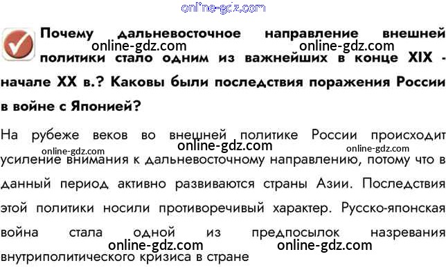 Готовые домашние задания по Истории за 9 класс Учебник Арсентьев, Данилов 2016 - Вопрос в начале параграфа § 29. Внешняя политика Николая II. Русско-японская война 1904-1905 гг. 1