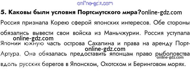 Готовые домашние задания по Истории за 9 класс Учебник Арсентьев, Данилов 2016 - Вопросы и задания § 29. Внешняя политика Николая II. Русско-японская война 1904-1905 гг. 5