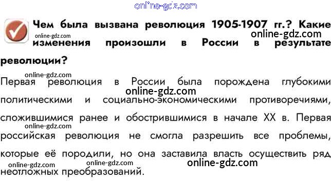 Готовые домашние задания по Истории за 9 класс Учебник Арсентьев, Данилов 2016 - Вопрос в начале параграфа § 30. Первая российская революция и политические реформы 1905-1907 гг. 1