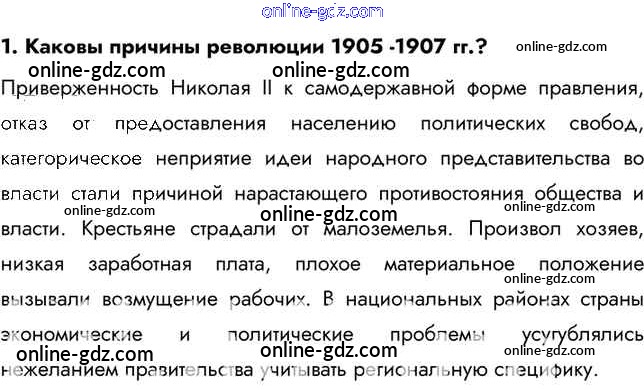 Готовые домашние задания по Истории за 9 класс Учебник Арсентьев, Данилов 2016 - Вопросы и задания § 30. Первая российская революция и политические реформы 1905-1907 гг. 1