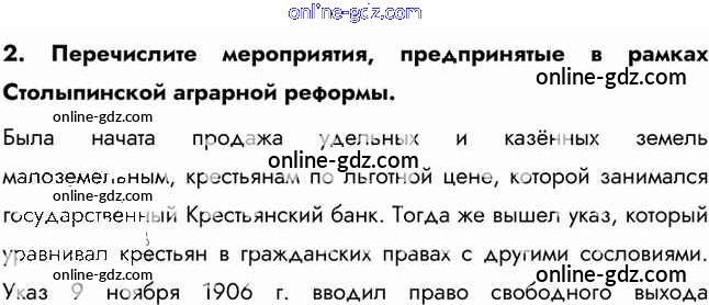 Готовые домашние задания по Истории за 9 класс Учебник Арсентьев, Данилов 2016 - Вопросы и задания § 31. Социально-экономические реформы П. А. Столыпина 2