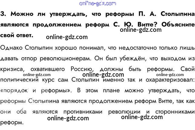 Готовые домашние задания по Истории за 9 класс Учебник Арсентьев, Данилов 2016 - Вопросы и задания § 31. Социально-экономические реформы П. А. Столыпина 3