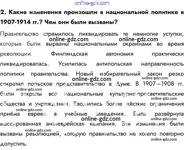 Готовые домашние задания по Истории за 9 класс Учебник Арсентьев, Данилов 2016 - Вопросы и задания § 32. Политическое развитие страны в 1907-1914 гг. 2