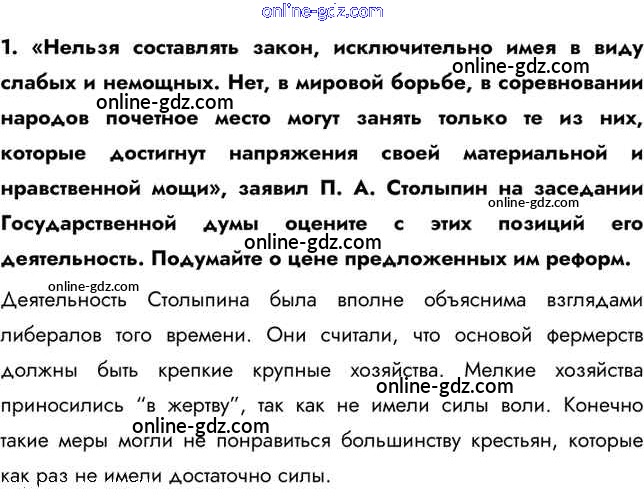 Готовые домашние задания по Истории за 9 класс Учебник Арсентьев, Данилов 2016 - Думаем, сравниваем, размышляем § 32. Политическое развитие страны в 1907-1914 гг. 1