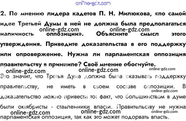 Готовые домашние задания по Истории за 9 класс Учебник Арсентьев, Данилов 2016 - Думаем, сравниваем, размышляем § 32. Политическое развитие страны в 1907-1914 гг. 2