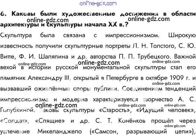 Готовые домашние задания по Истории за 9 класс Учебник Арсентьев, Данилов 2016 - Вопросы и задания Серебряный век русской культуры. 6