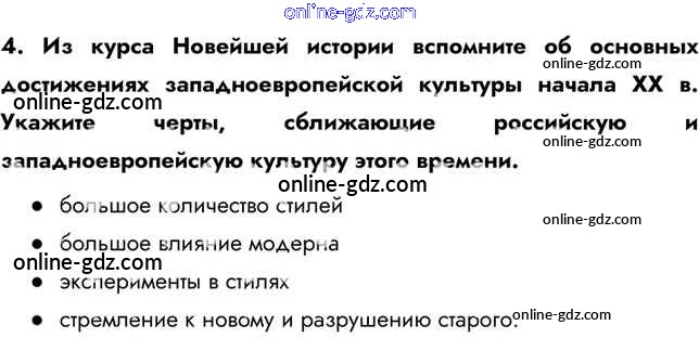 Готовые домашние задания по Истории за 9 класс Учебник Арсентьев, Данилов 2016 - Думаем, сравниваем, размышляем Серебряный век русской культуры. 4