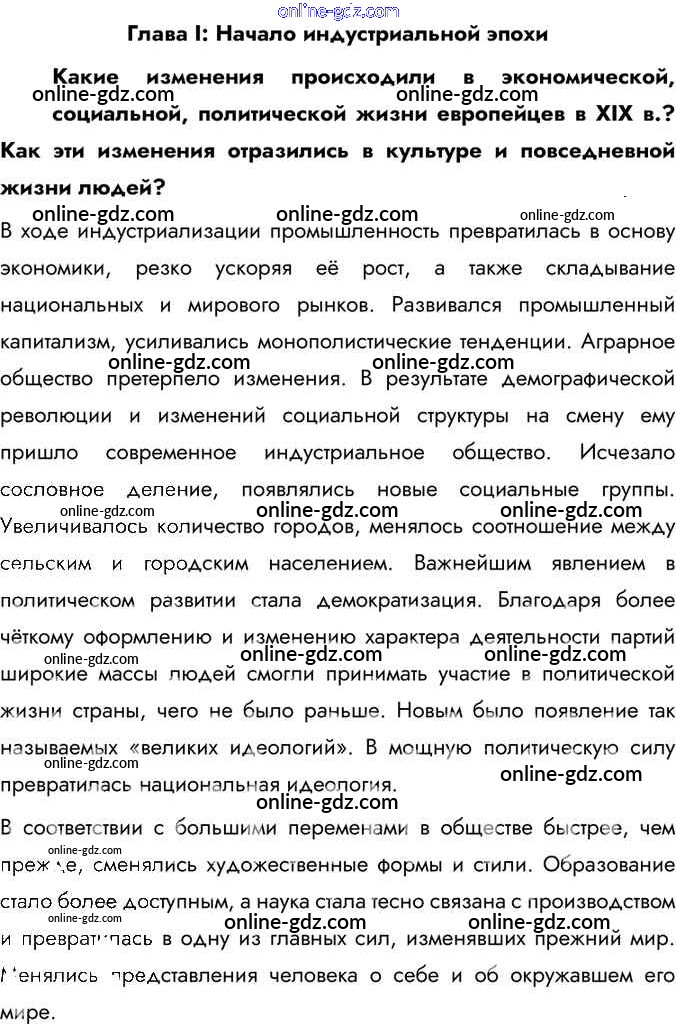 Готовые домашние задания по Истории за 9 класс Учебник Юдовская, Баранов 2019 - Глава 1 Начало индустриальной эпохи
