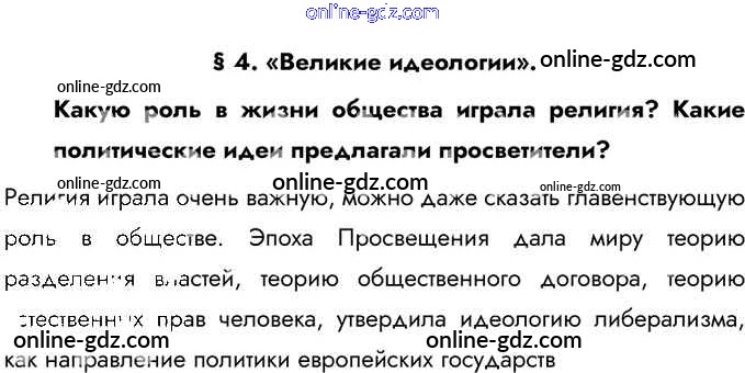 Готовые домашние задания по Истории за 9 класс Учебник Юдовская, Баранов 2019 - Вспомните §4. «Великие идеологии» 1