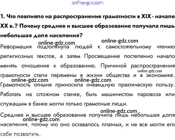 Готовые домашние задания по Истории за 9 класс Учебник Юдовская, Баранов 2019 - Вопросы §5. Образование и наука 1