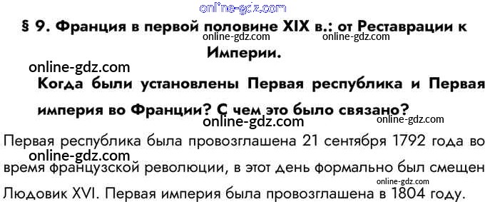 Готовые домашние задания по Истории за 9 класс Учебник Юдовская, Баранов 2019 - Вспомните §9. Франция в первой половине XIX в.: от Реставрации к Империи 1