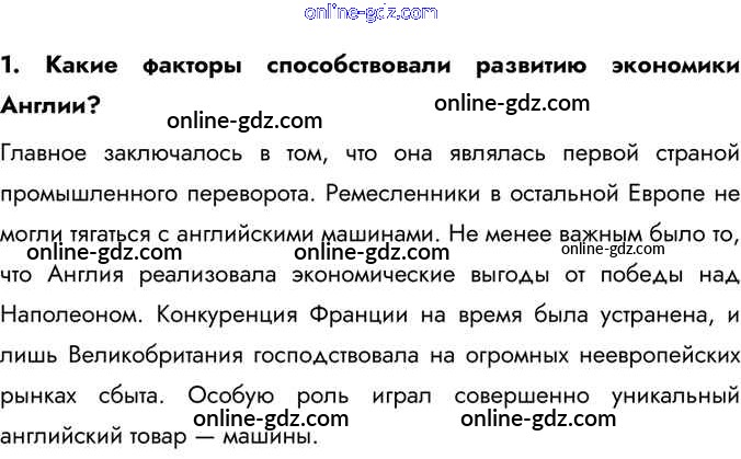 Готовые домашние задания по Истории за 9 класс Учебник Юдовская, Баранов 2019 - Вопросы §10. Великобритания: экономическое лидерство и политические реформы 1