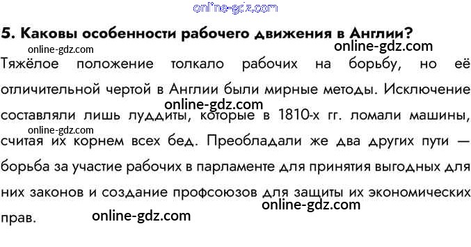 Готовые домашние задания по Истории за 9 класс Учебник Юдовская, Баранов 2019 - Вопросы §10. Великобритания: экономическое лидерство и политические реформы 5