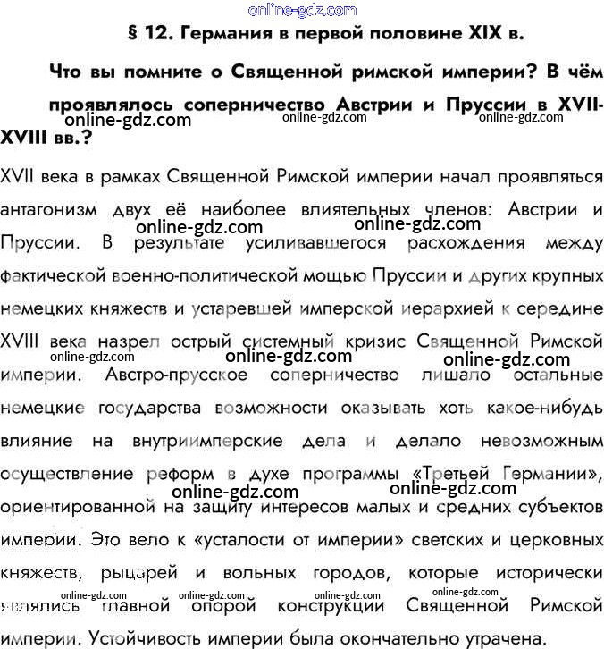 Готовые домашние задания по Истории за 9 класс Учебник Юдовская, Баранов 2019 - Вспомните §12. Германия в первой половине XIX в. 1