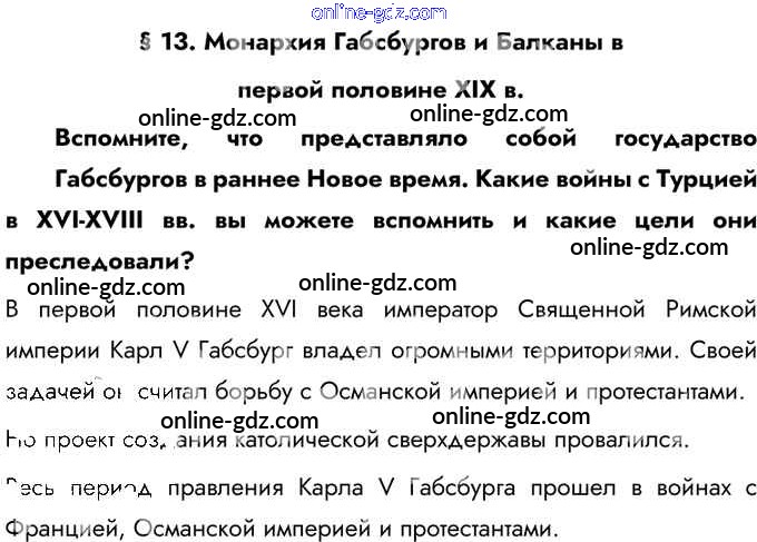 Готовые домашние задания по Истории за 9 класс Учебник Юдовская, Баранов 2019 - Вспомните §13. Монархия Габсбургов и Балканы в первой половине XIX в. 1
