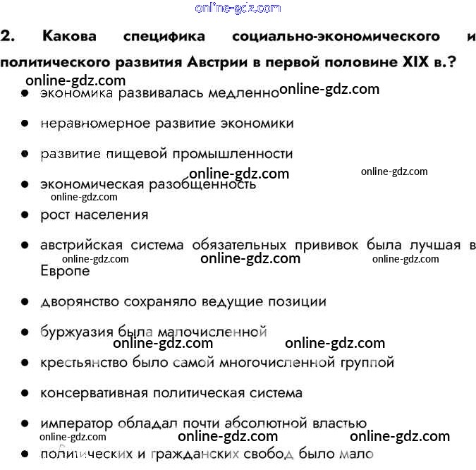 Готовые домашние задания по Истории за 9 класс Учебник Юдовская, Баранов 2019 - Вопросы §13. Монархия Габсбургов и Балканы в первой половине XIX в. 2