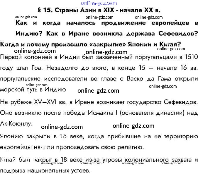 Готовые домашние задания по Истории за 9 класс Учебник Юдовская, Баранов 2019 - Вспомните §15. Страны Азии в XIX — начале XX в. 1