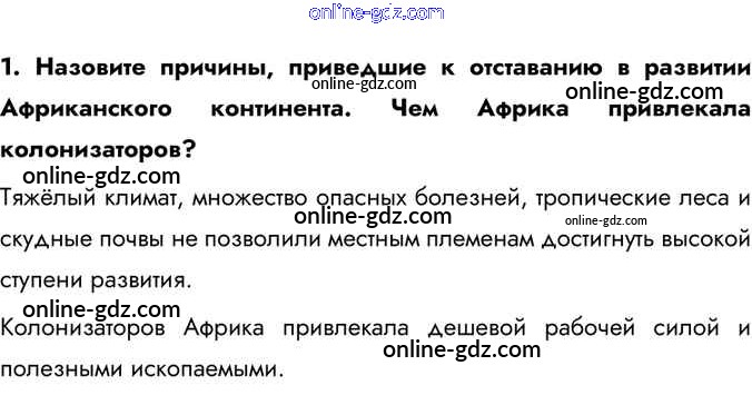 Готовые домашние задания по Истории за 9 класс Учебник Юдовская, Баранов 2019 - Вопросы §16. Африка в XIX — начале XX в. 1