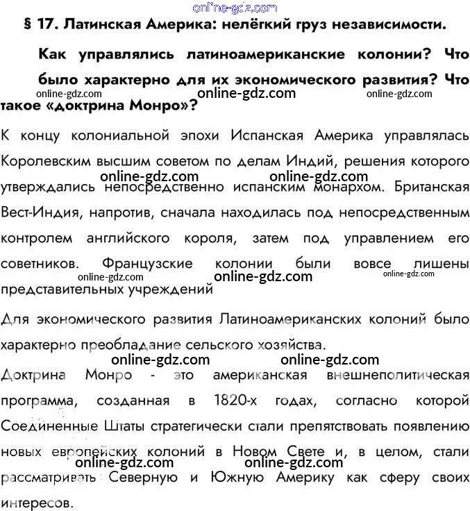 Готовые домашние задания по Истории за 9 класс Учебник Юдовская, Баранов 2019 - Вспомните §17. Латинская Америка: нелёгкий груз независимости 1