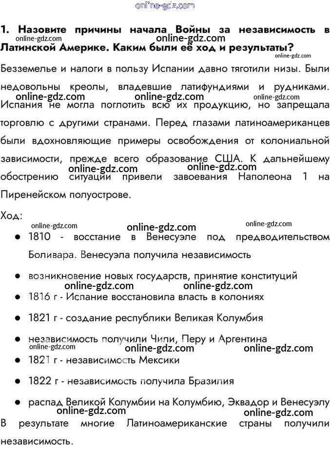 Готовые домашние задания по Истории за 9 класс Учебник Юдовская, Баранов 2019 - Вопросы §17. Латинская Америка: нелёгкий груз независимости 1