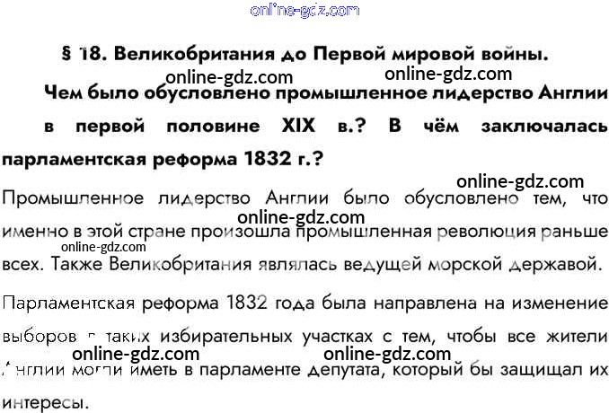 Готовые домашние задания по Истории за 9 класс Учебник Юдовская, Баранов 2019 - Вспомните §18. Великобритания до Первой мировой войны 1