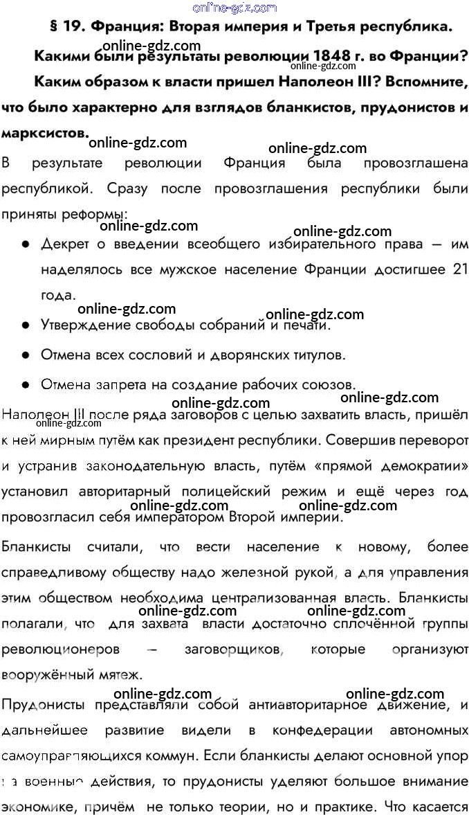 Готовые домашние задания по Истории за 9 класс Учебник Юдовская, Баранов 2019 - Вспомните §19. Франция: Вторая империя и Третья республика 1