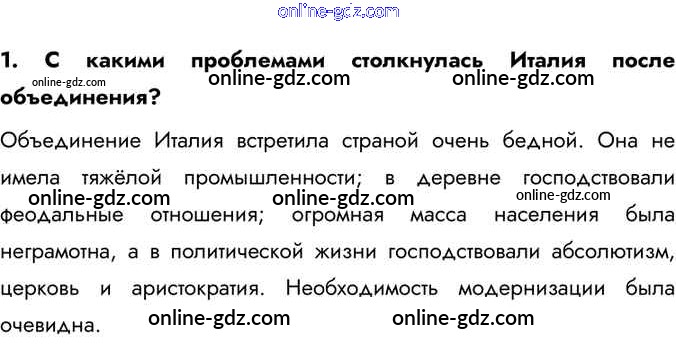 Готовые домашние задания по Истории за 9 класс Учебник Юдовская, Баранов 2019 - Вопросы §22. Италия: время реформ и колониальных захватов 1