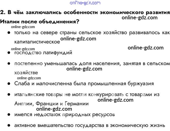 Готовые домашние задания по Истории за 9 класс Учебник Юдовская, Баранов 2019 - Вопросы §22. Италия: время реформ и колониальных захватов 2
