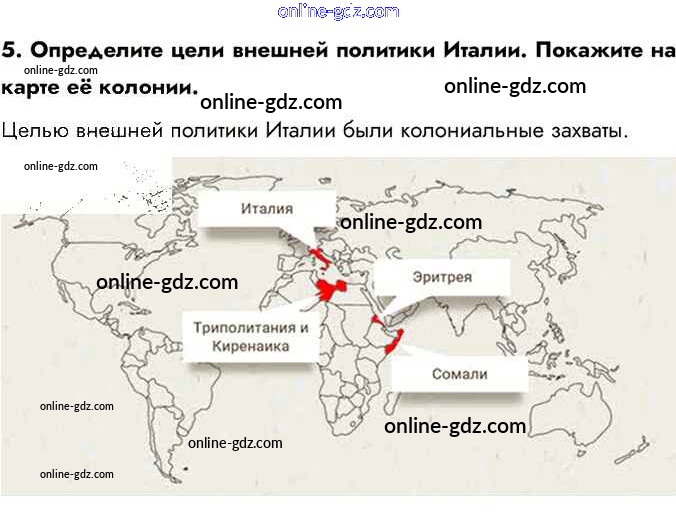 Готовые домашние задания по Истории за 9 класс Учебник Юдовская, Баранов 2019 - Вопросы §22. Италия: время реформ и колониальных захватов 5
