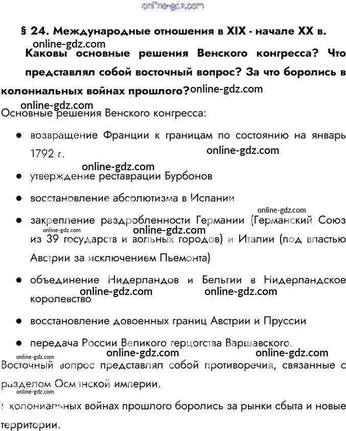 Готовые домашние задания по Истории за 9 класс Учебник Юдовская, Баранов 2019 - Вспомните §24. Международные отношения в XIX — начале XX в. 1