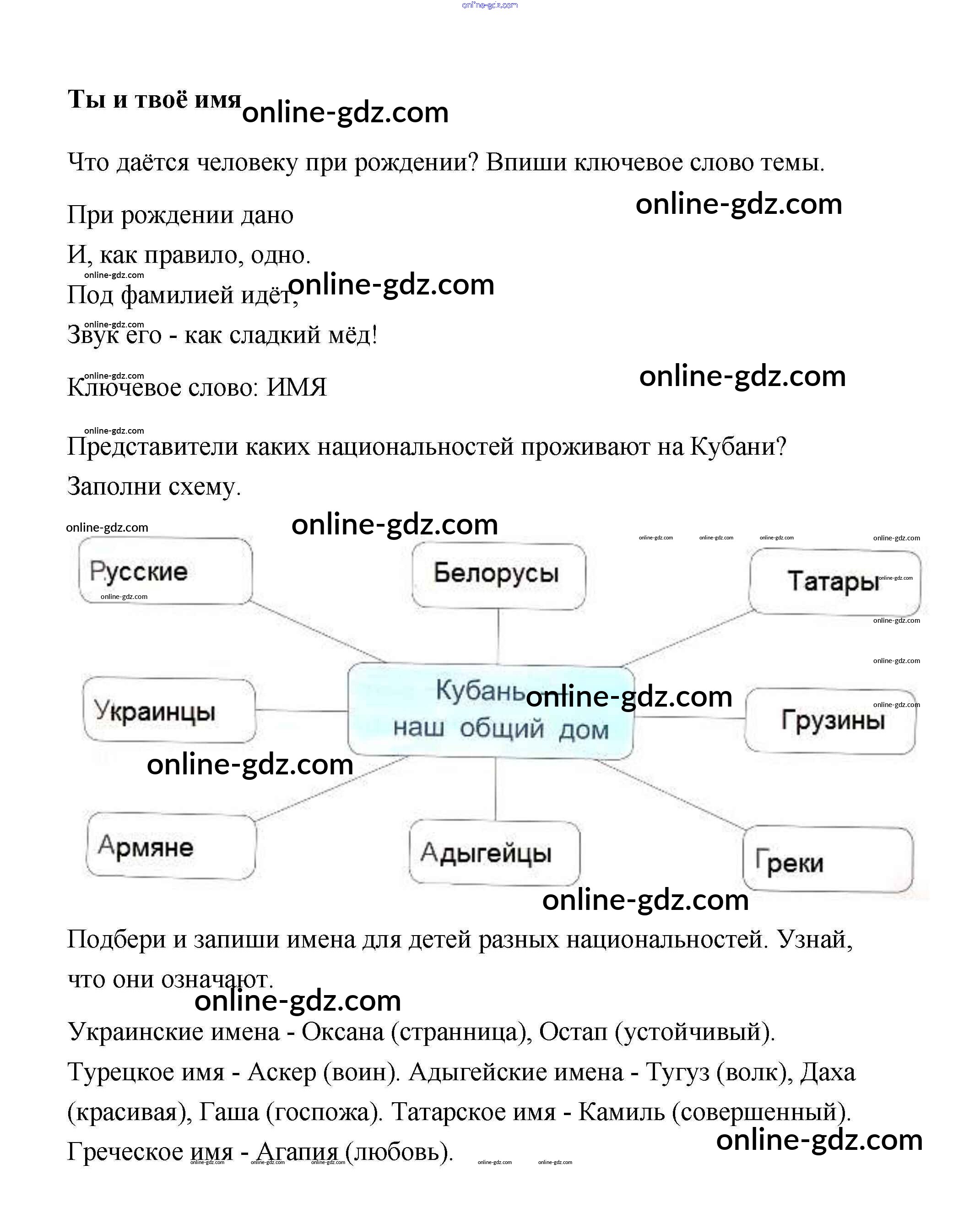 Готовые домашние задания по Кубановедению за 3 класс Рабочая тетрадь Науменко 2017 - Темы Ты и твое имя